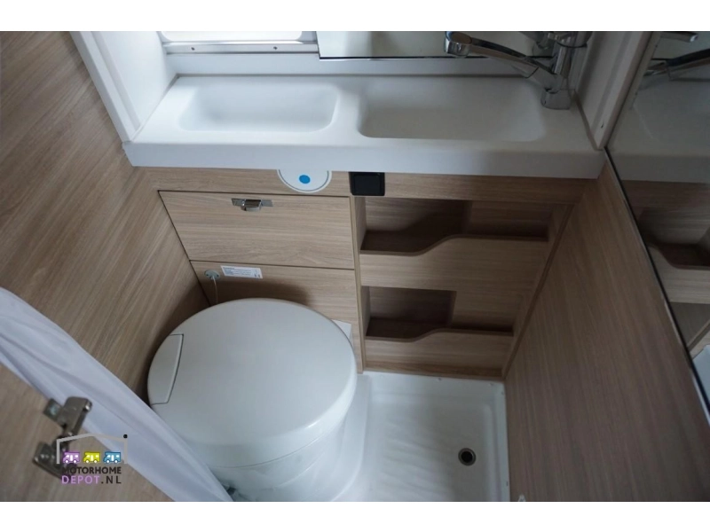 Afvalwatertank (vast), Cassettetoilet, Douche, Schoonwatertank (vast), Toilet/Wasruimte