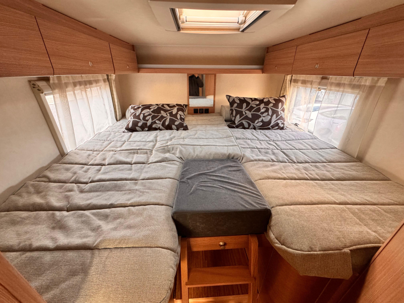 Mooie grote garageruimte en enkele bedden (206 en 196cm lengte) in deze VAN ti. Veel hoger dan het nieuwe model waardoor fietsen tot wel ca. 120cm hoogte makkelijk binnen vervoert kunnen worden. De Fietsendrager aan de buitenkant kan gemonteerd worden of ook nog eens 2 fietsen totaal 50kg op geplaatst worden. En dat alles met een compacte breedte van slechts 220cm. Een heerlijke vlotte 150pk motor.