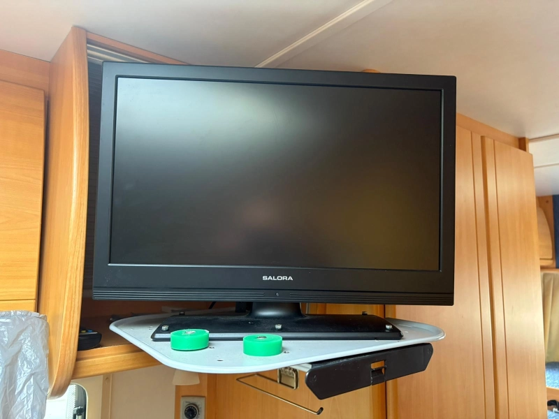 De uitrusting van deze camper is met gasfornuis, koelkast, televisie, douche, zonnepaneel, boordcomputer en verstelbaar stuur behoorlijk compleet.