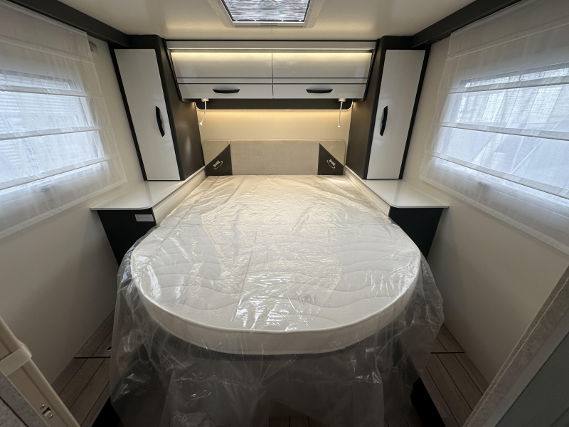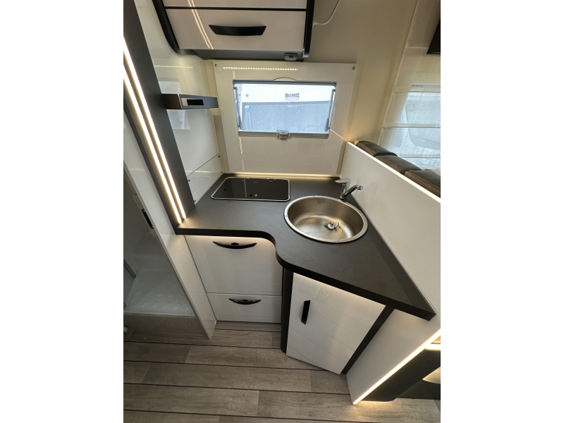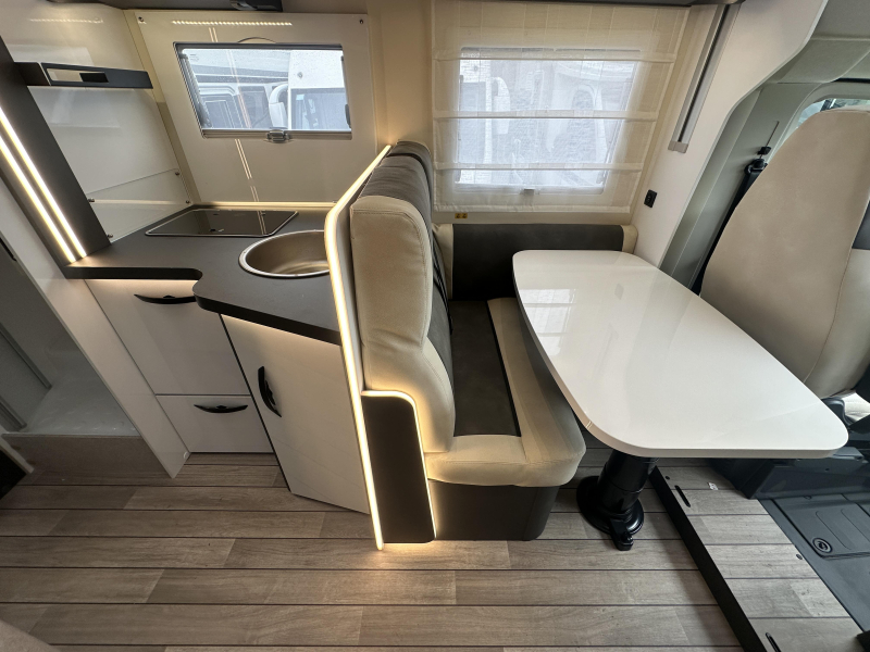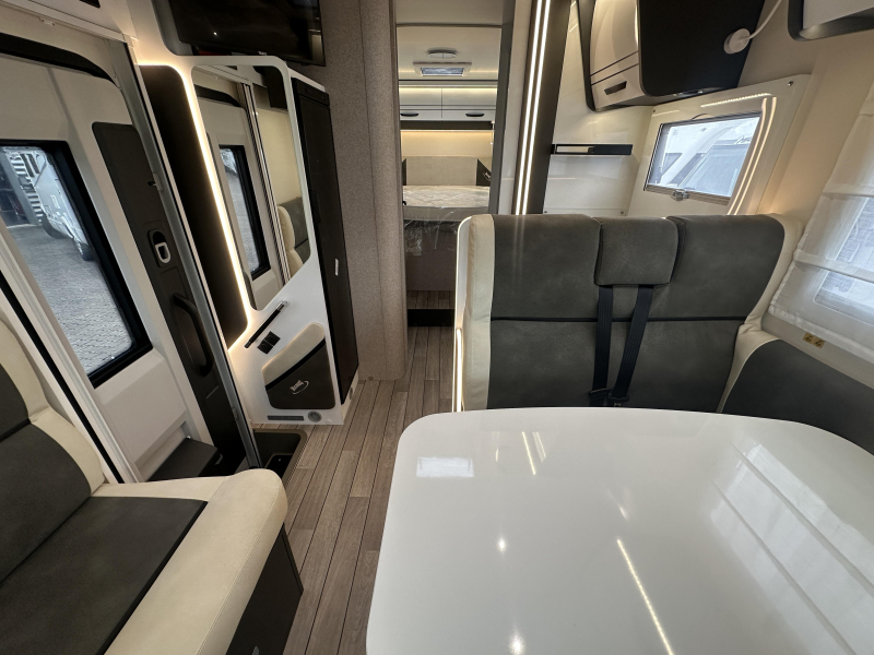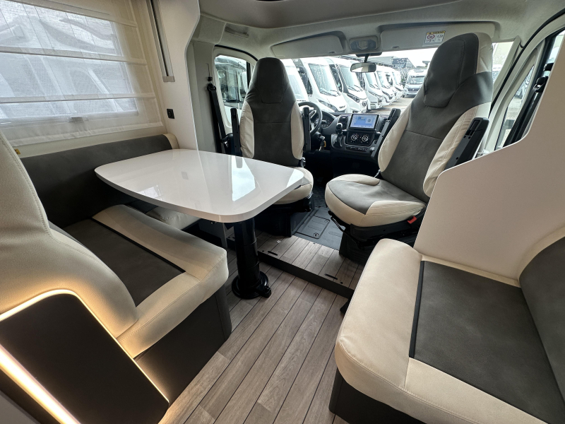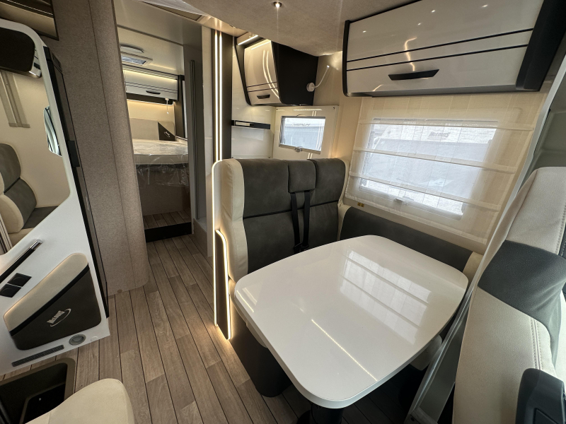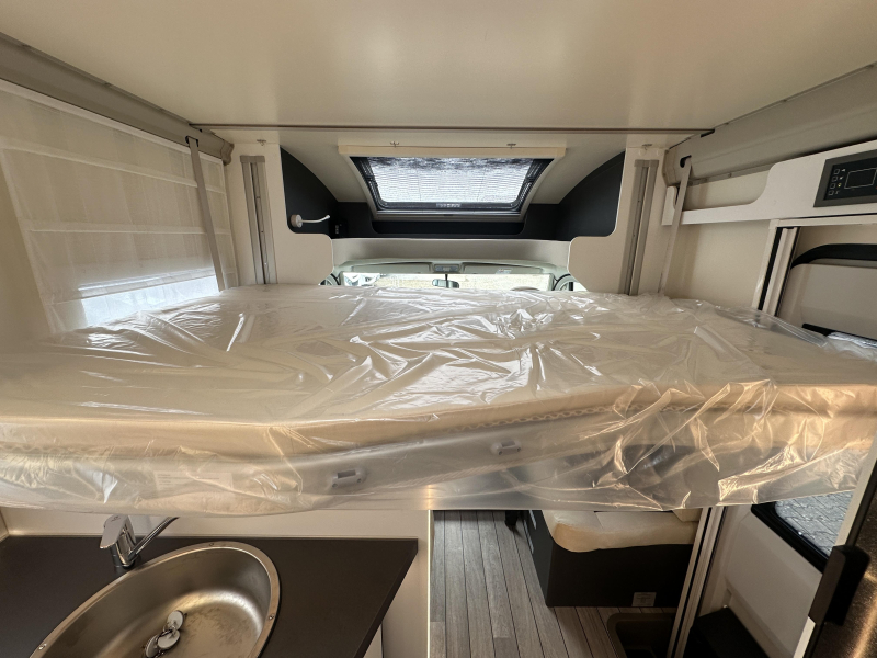 McLouis MC4 379, deze ruime Half-Integraal beschikt over een prettige indeling met L -zit, QUEENSBED achter en een hefbed voor. Deze elegante camper heeft een 140PK sterke Fiat motor I.C.M. een 8-traps Automaat.