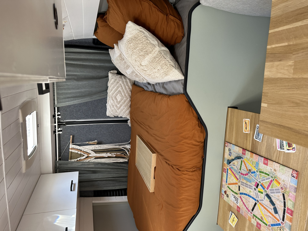 • Er is een mooie, vaste bench onder het bed ingebouwd, ideaal voor wie met een hond reist