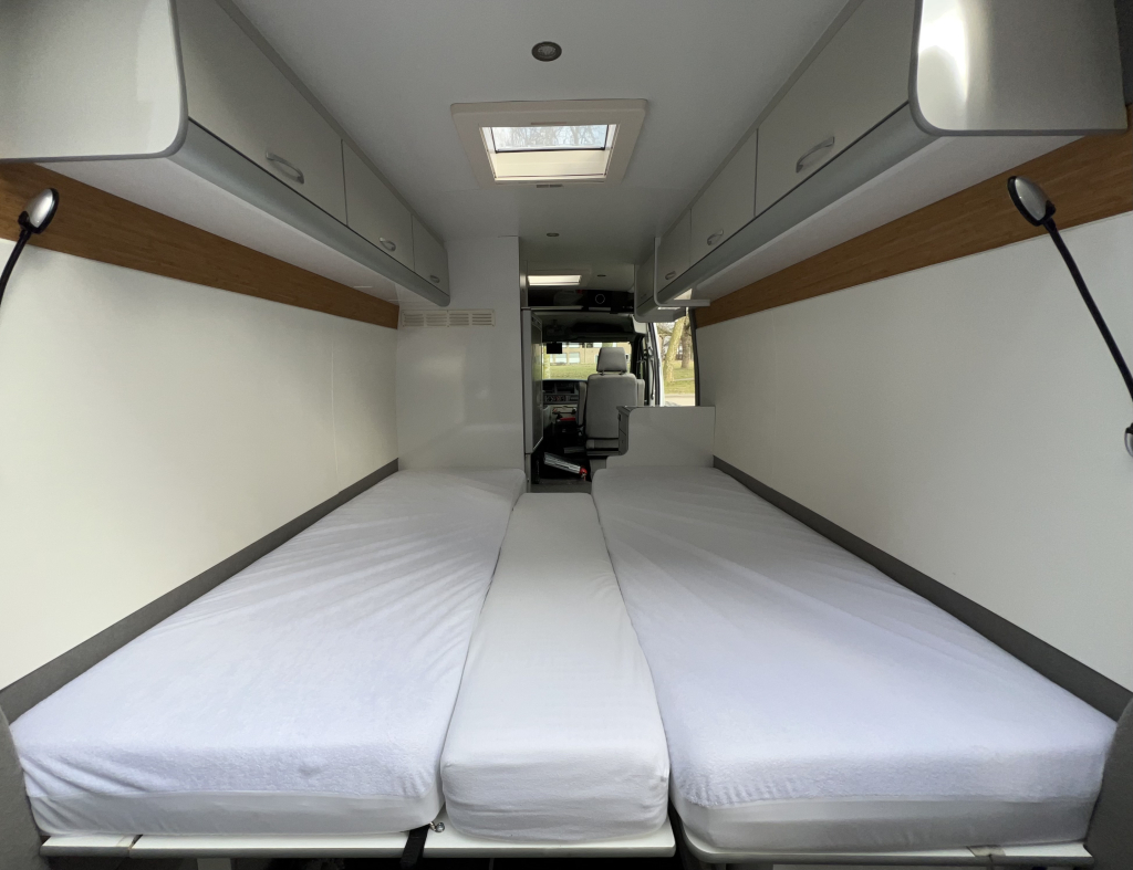Met z’n 6,20 meter zit je goed als je in gezellige dorpen en steden een parkeerplaats zoekt of als je de veerboot neemt naar Engeland of Corsica. De camper is 2,07 meter breed en 2,48 meter hoog. De stahoogte in de camper is 1,89 meter. De maximale massa van de camper is 3.500 kg.