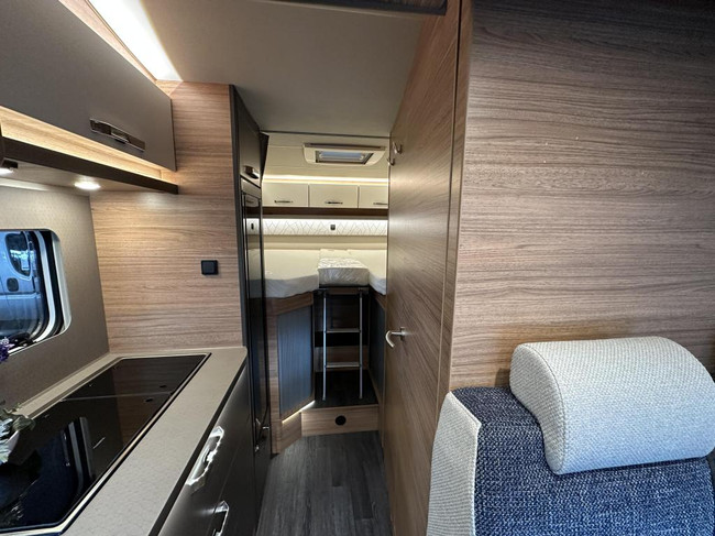 Er wordt veel ruimte bespaard door het gebruik van het tweepersoons hefbed boven de zitgroep. De aparte bedden achterin bieden een makkelijke instap en een slaapgelegenheid voor 2 personen. Doormiddel van een vulstuk kunnen deze bedden eenvoudig omgebouwd worden naar een ruim tweepersoonsbed. Aan slaapcomfort zal het u in deze camper, die is voorzien van lattenbodems en traagschuimmatrassen, zeker niet ontbreken. In de de badkamer vindt u niet alleen een wastafel maar ook een ingebouwd cassettetoilet. In de camper kunt u ook douchen.