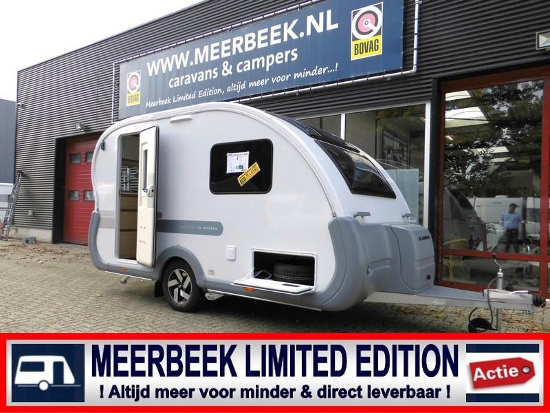 Nieuwe unieke Adria caravan met panoramaraam. Compacte en lichtgewicht caravan. Hoog laadvermogen. AL-KO onderstel. Volautomaat mover. Thule fietsendrager Hagelbestendiger kunststof dak en zijwanden. Lichtgewicht en daardoor zeer geschikt voor hybride en elektrische auto’s.